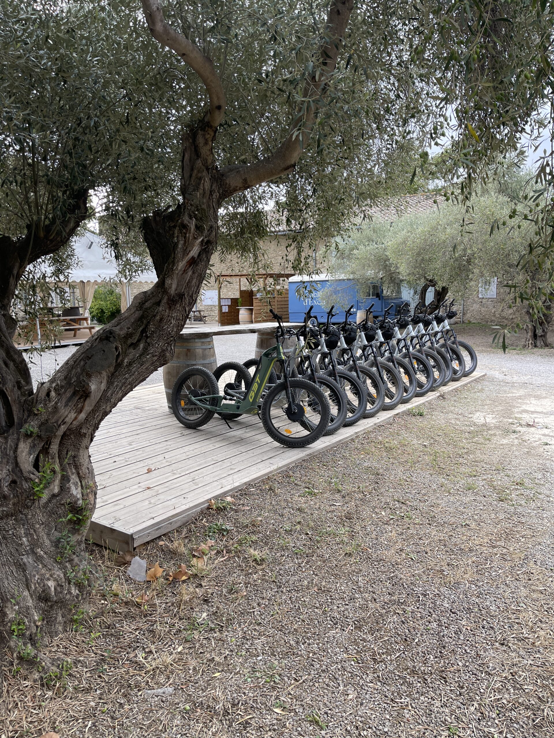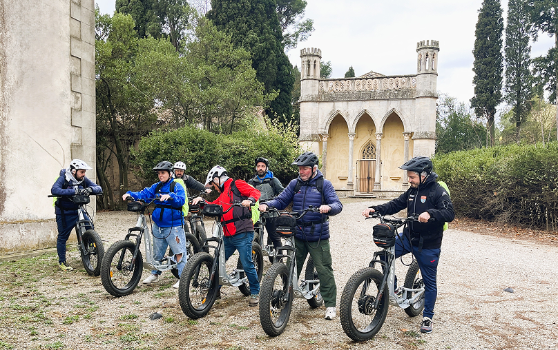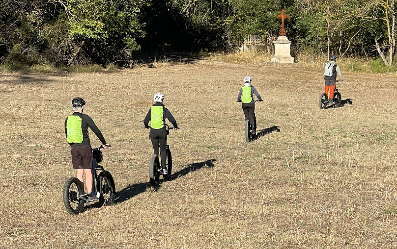 Départ en trottinettes depuis le Château de Sérame.