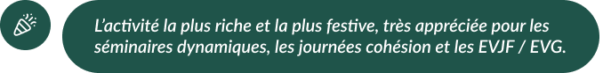 Programmes personnalisés selon vos objectifs (divertissement, cohésion, collaboration) et la taille de votre groupe